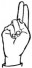 На ћирилици написано МИЛУТИН КРГА састоји се из 11 слова [?]. Исписано ћириличном једноручном азбуком за глувонеме: